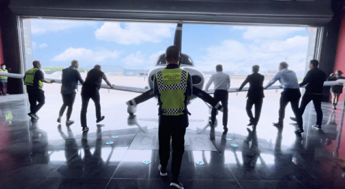 随着国旗大门的缓缓打开,B-10VV号呈现在大家眼前,同时一并展现在大家面前的还有乐享飞行俱乐部的保障团队,这是一个年轻且富有激情的专业团队,他们是兼具颜值和专业飞行技能的飞行团队、认真细致专业的机务工程师团队以及美丽温柔并且专业的高端私人飞行管家团队,他们将为乐享每一位会员每一次私人飞行提供最专业、最高端、最贴心的专属订制飞行服务!